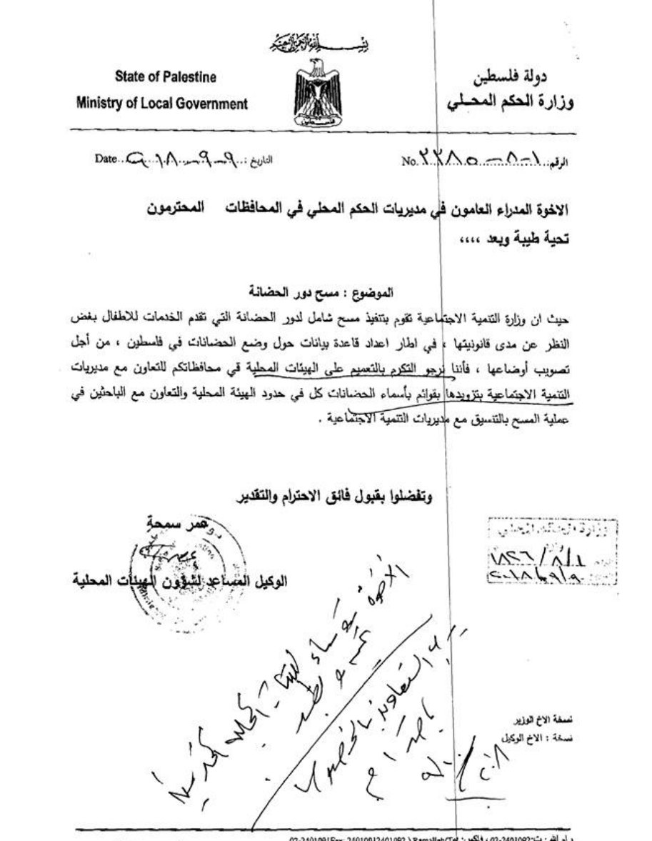 الاختلافات الكبيرة بين دور الحضانة وما تقدمه من خدمات، يكاد يوحي بغياب معايير ضابطة لعملها، لذا تنوي وزارة التنمية إجراء مسح شامل لدور الحضانة في نابلس بهدف تصويب أوضاعها.