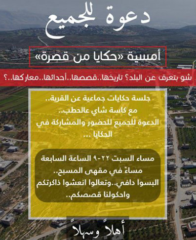 "بتنظيم من قصرة نت وبضيافة مقهى المسبح نتشرف بدعوتكم لحضور أمسية حكايا من قصرة