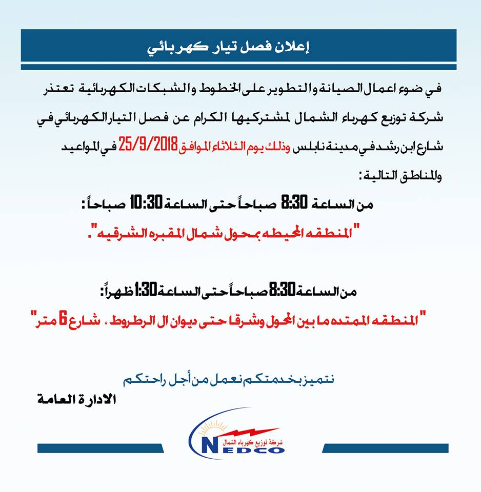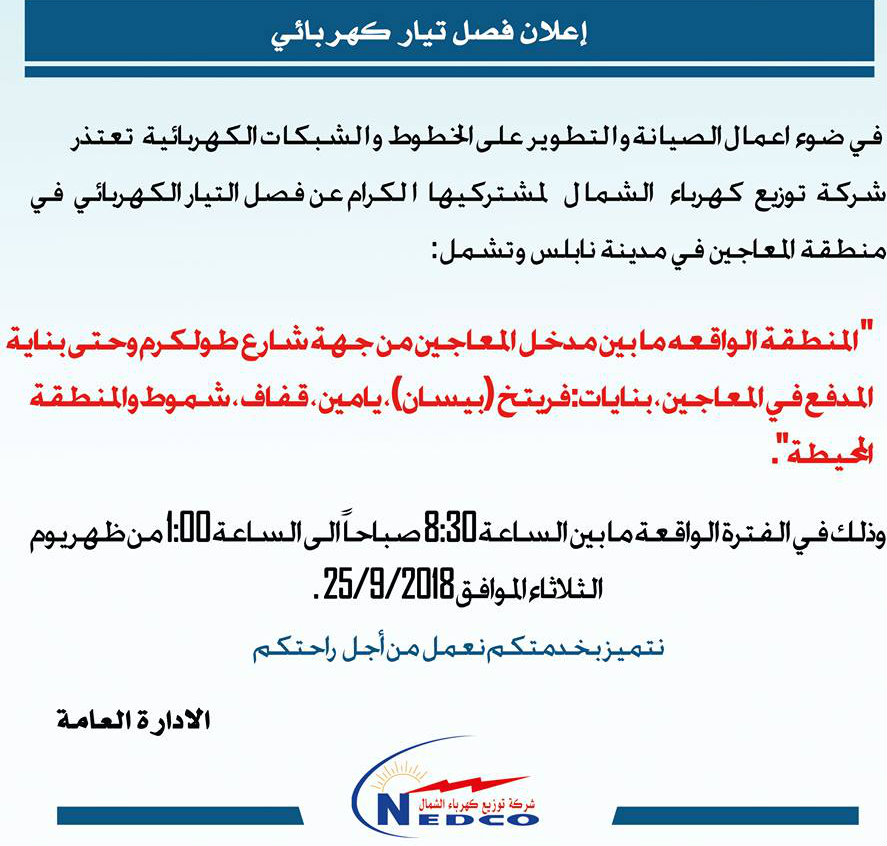 بلدية نابلس: جدول توزيع المياه