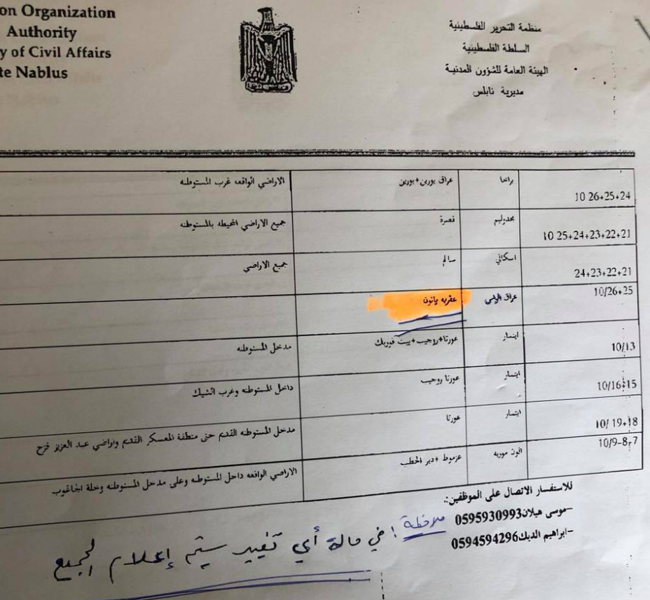 7. بلدية نابلس: جدول توزيع المياه