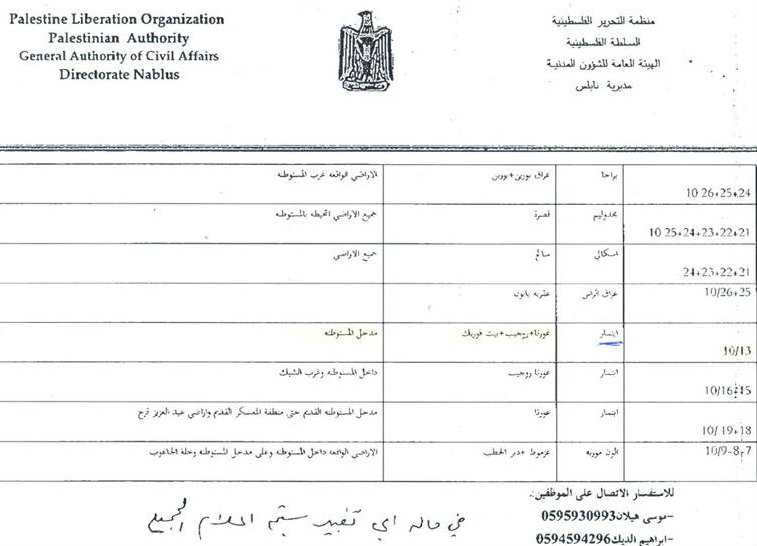 بلدية بيت فوريك تنشر جدول تنسيق قطف الزيتون حسب ما وردها من الشؤون المدنية.