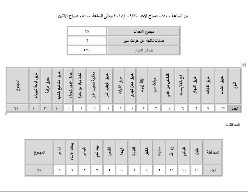 الدفاع المدني: 67 حادثاً خلال 24 ساعة