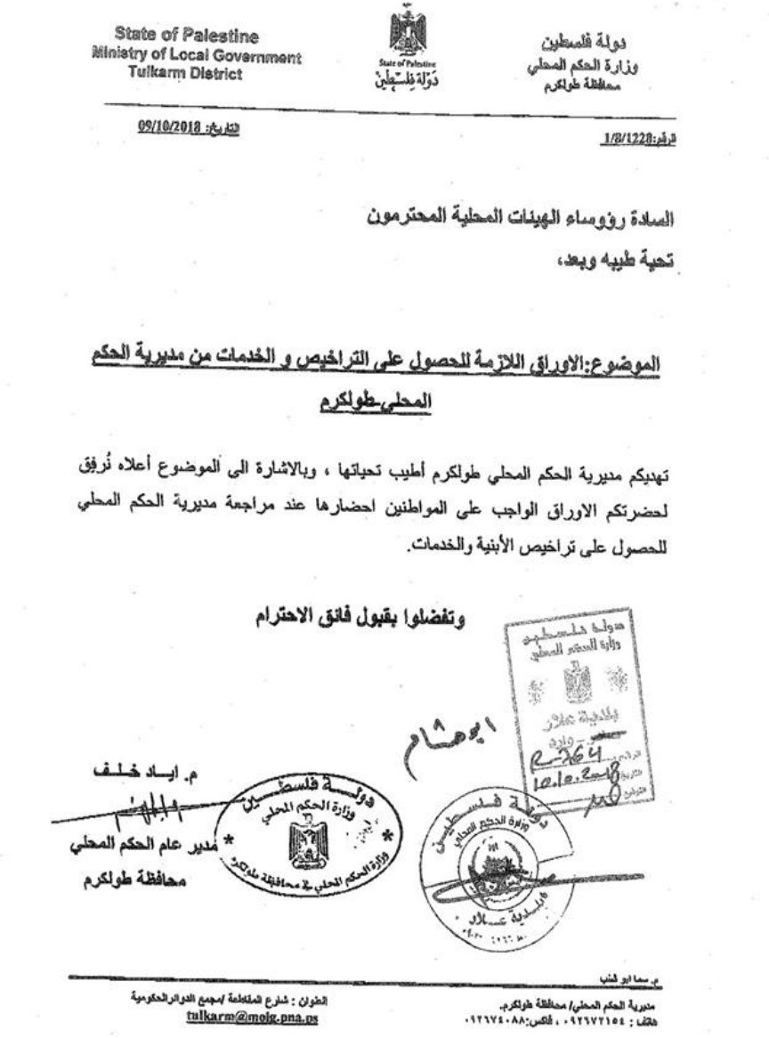 بلدية علار تعلن عن الإجراءات اللازم اتباعها للحصول على رخصة للأبنية والخدمات.