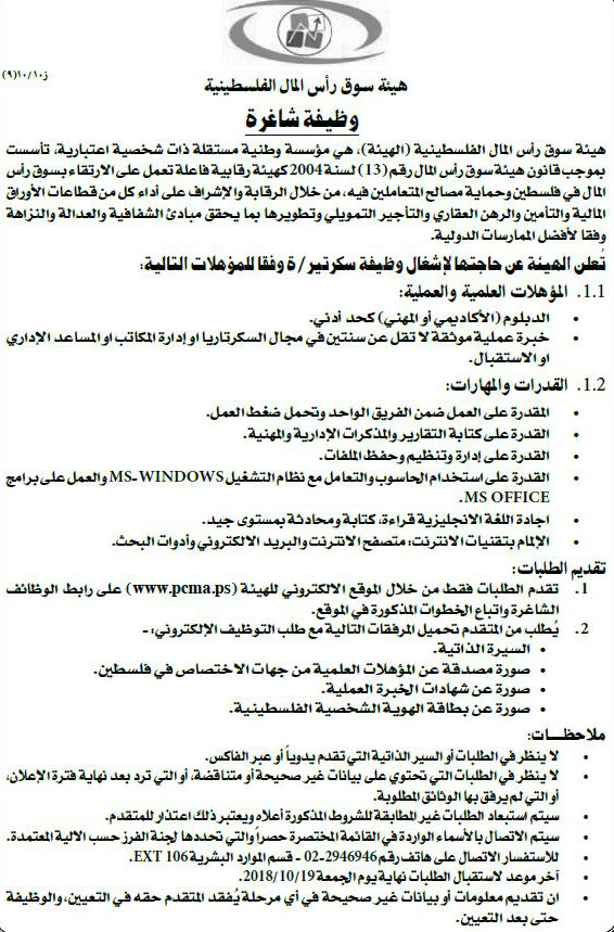 وظيفة شاغرة في شركة بنابلس