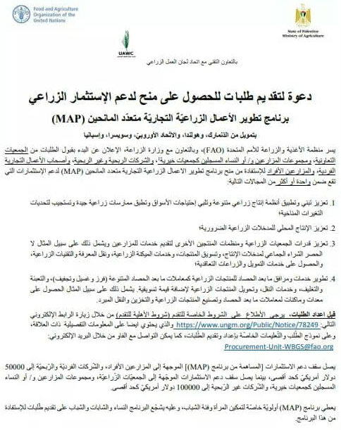 مديرية زراعة نابلس واتحاد لجان العمل الزراعي وبالشراكة مع منظمة FAO يعقدون ورشة لشرح طرق ومتطلبات التقديم للمنح الزراعية في نابلس.