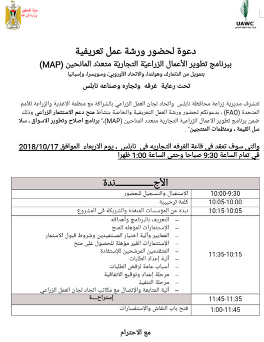 ورشة منح دعم الاستثمار الزراعي بنابلس