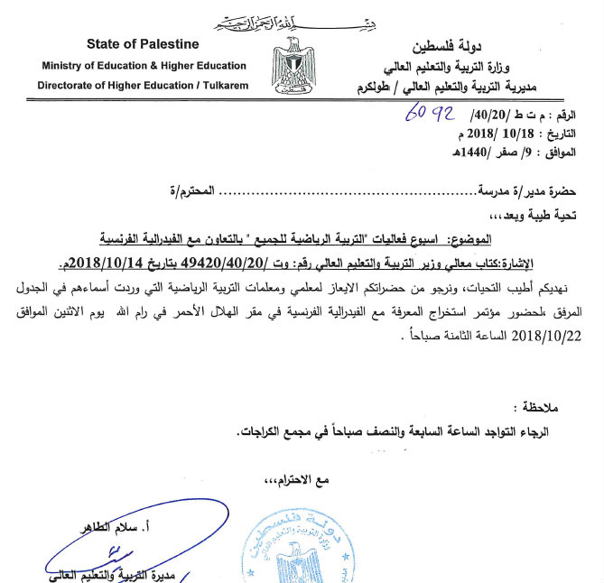 تربية طولكرم تدعو معلمي الرياضة لمؤتمر
