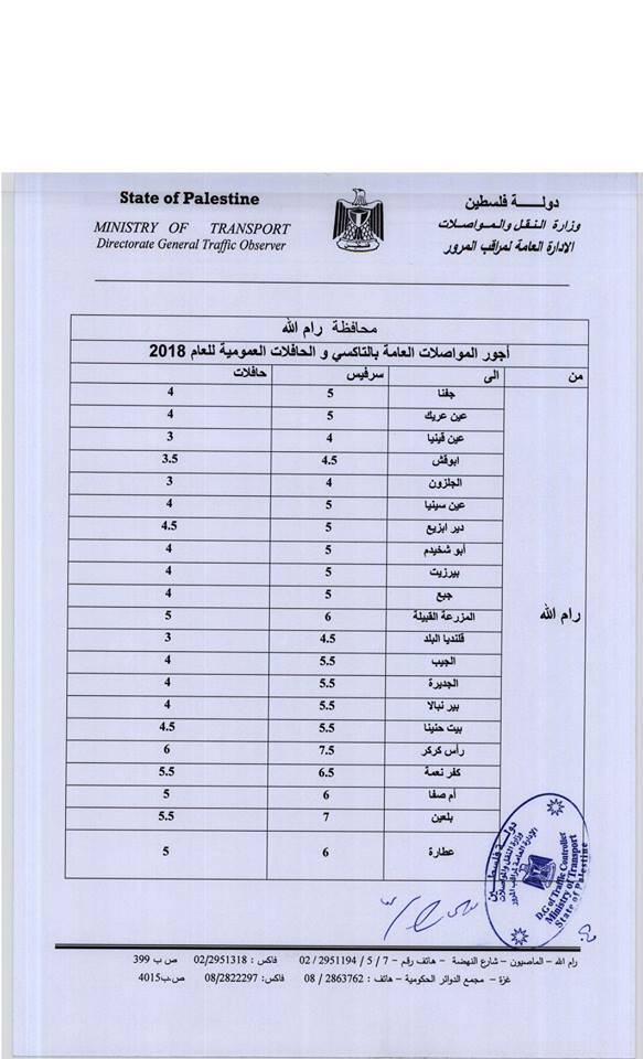 وزارة النقل والموصلات تنشر التعرفة النهائية للمواصلات، وذلك بعد دراسة دقيقة ومستفيضة لكافة الاعتراضات وبالتعاون مع كافة الجهات الشريكة.