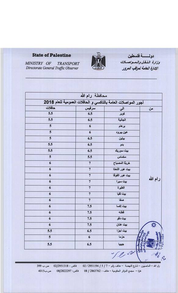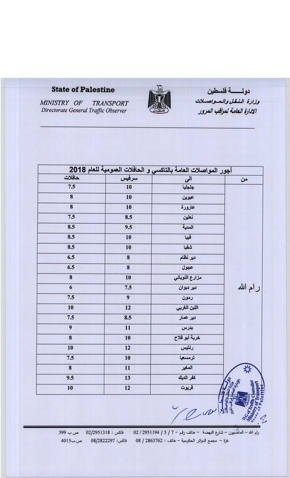 وزارة النقل تنشر التعرفة النهائية للمواصلات