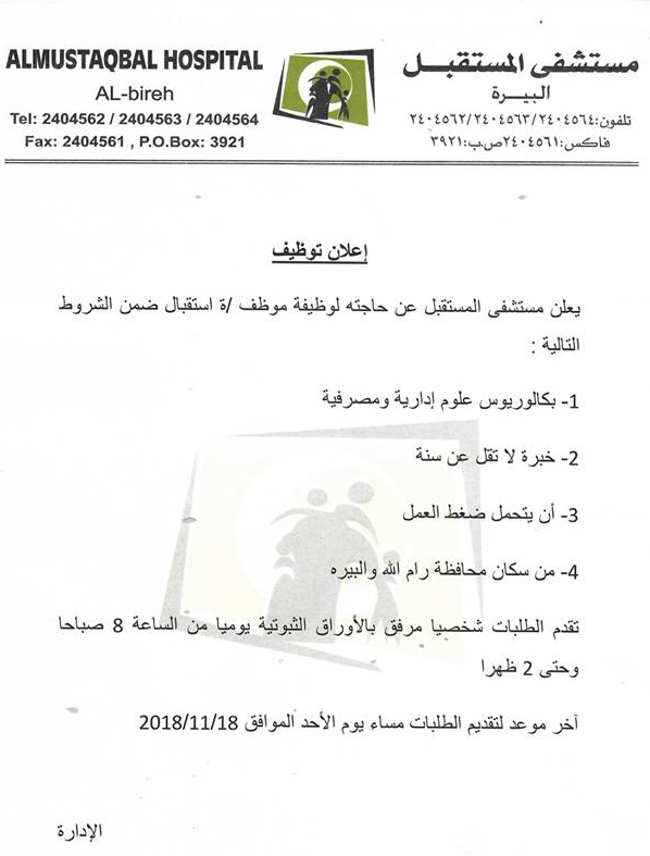 وظيفة شاغرة في الجامعة العربية الأمريكية