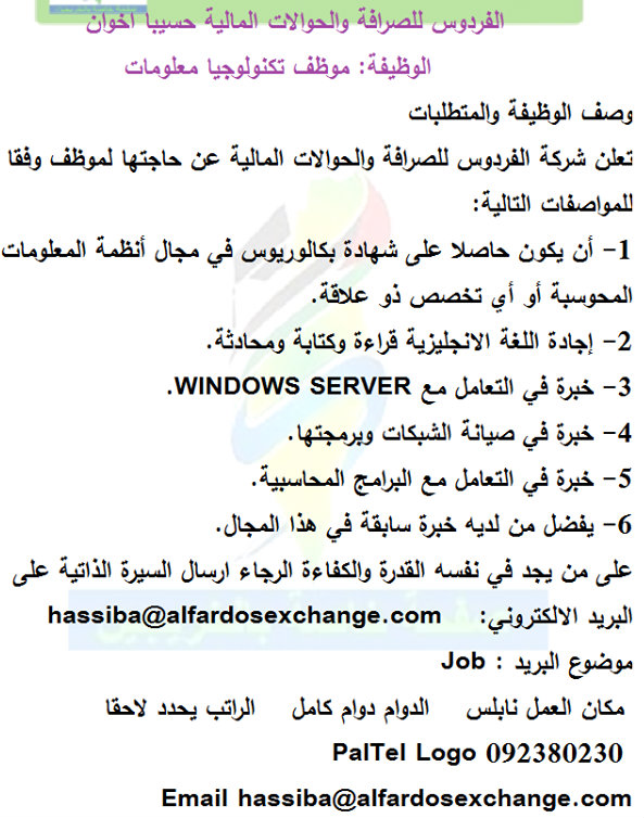الوظيفة شاغرة في محل صرافة.