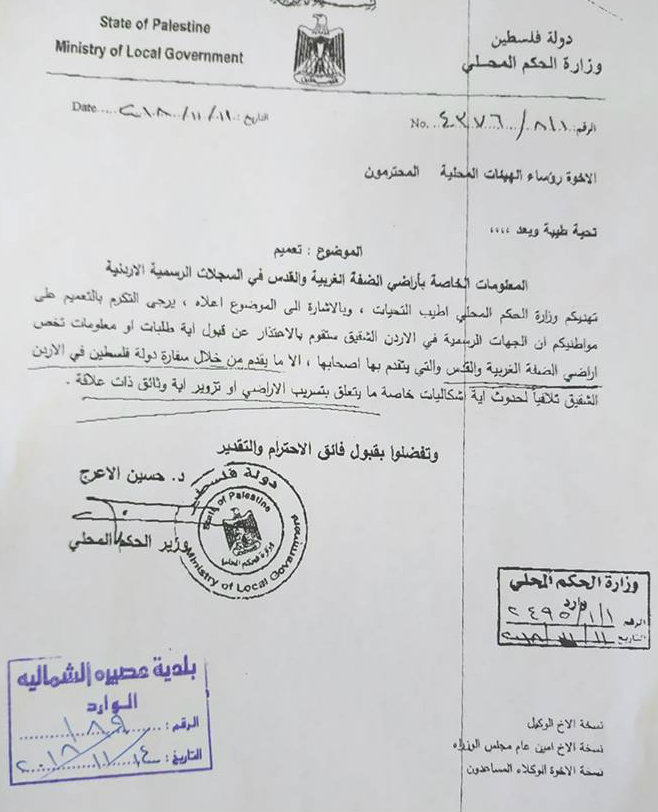عصيرة الشمالية.. تعميم لأصحاب الأراضي بالسجلات الأردنية