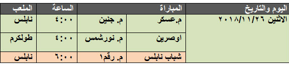أعلن الاتحاد الفلسطيني لكرة القدم يوم الثلاثاء 20.11.2018، عن جدول مباريات الأسبوع السادس لدوري الدرجة الثانية كما يلي: