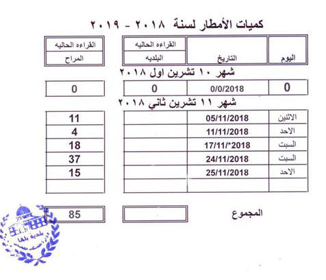 85 ملم هو مجموع الأمطار التي هطلت على بلعا في تشرين الثاني 2018، مقابل لا شيء في الشهر السابق.
