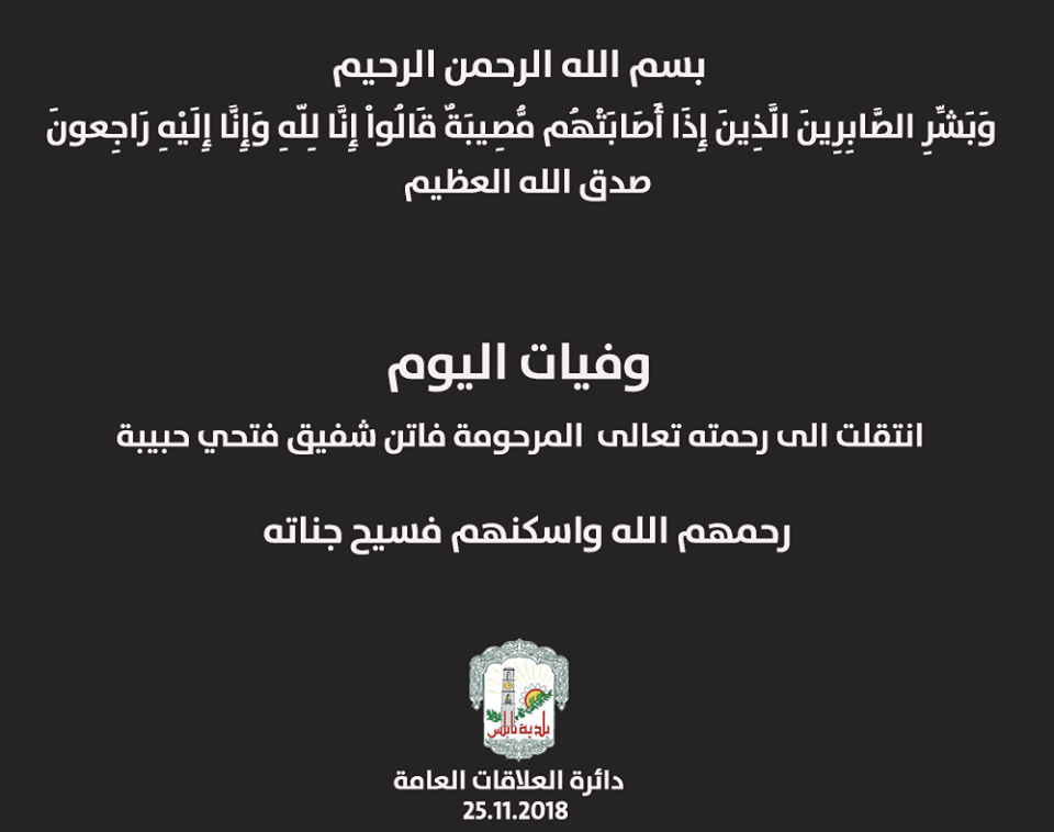 كشف وفيات نابلس ليوم الأحد 25.11.2018.