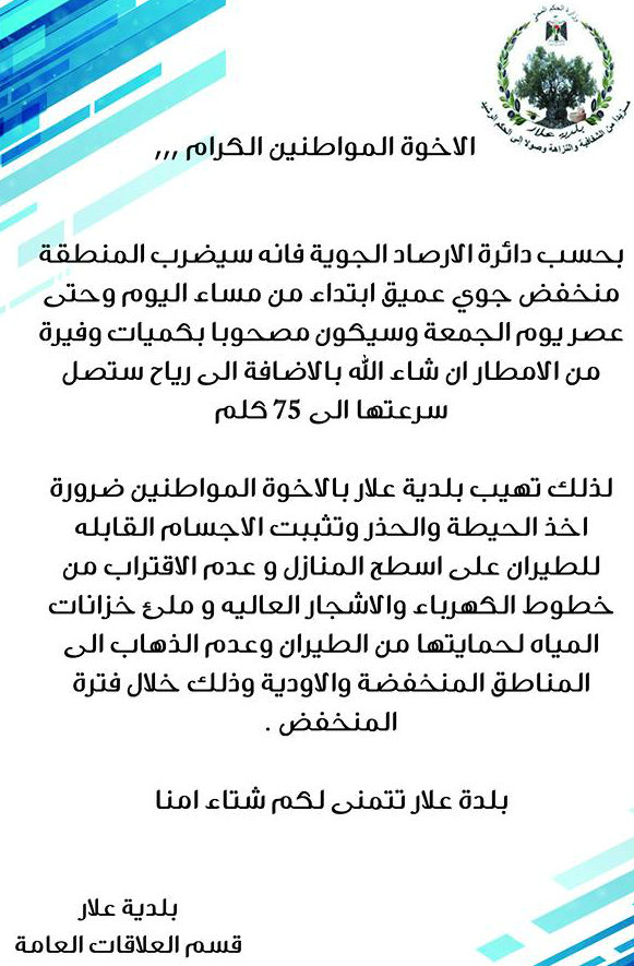الدفاع المدني يحذر من المنخفض الجوي القادم