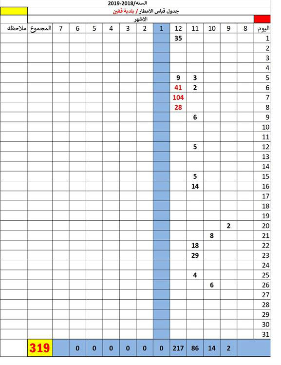 نشرت بلدية قفين يوم الأحد 09.12.2018، كمية الأمطار الهاطلة على البلدة، حيث بلغت كمية الأمطار حتى هذا اليوم 319 ملم.