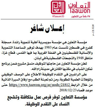 وظيفة شاغرة براتب 2000 شيكل مع نسبة