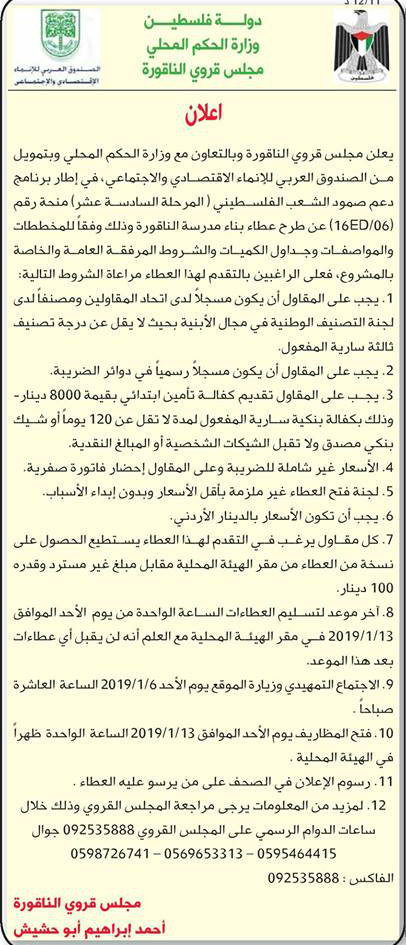 الخطة التنموية لقرية الراس لعام 2019