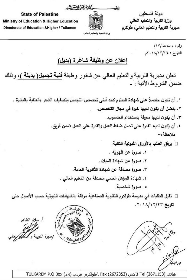 مدرسة حوارة تطلب معلمين بشكل طارئ