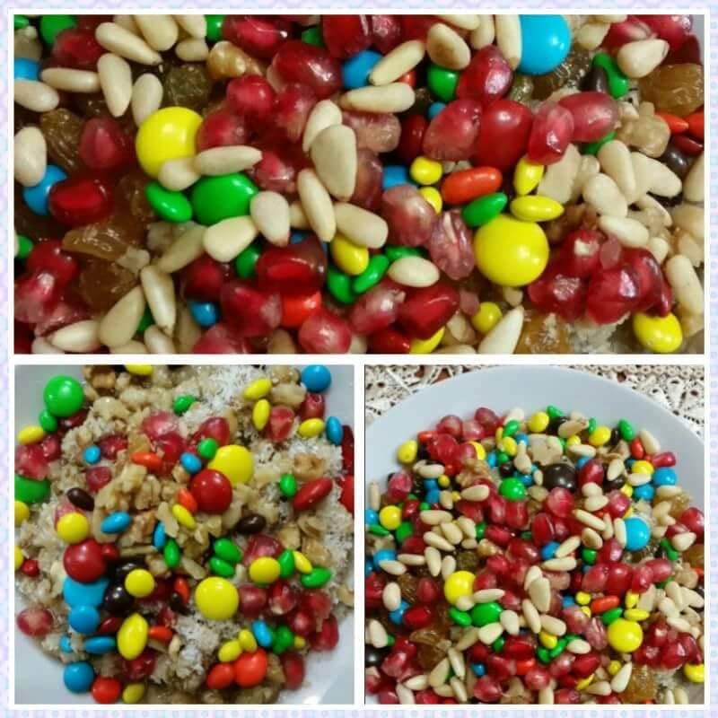دوز: "يتكون الطبق من القمح المسلوق وتضاف إليه الفاكهة المجففة كالمشمش والتين والزبيب، مع سكر وقرفة ويانسون وشومر مطحون. ويتم طبخها معاً حتى النضوج، ثم تُزين بالمكسرات".