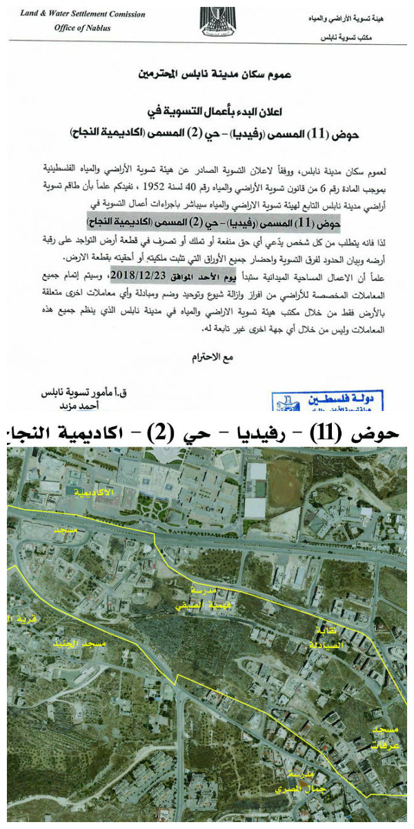 مكتب تسوية أراضي نابلس يعلن عن البدء بأعمال التسوية في حوض 11.