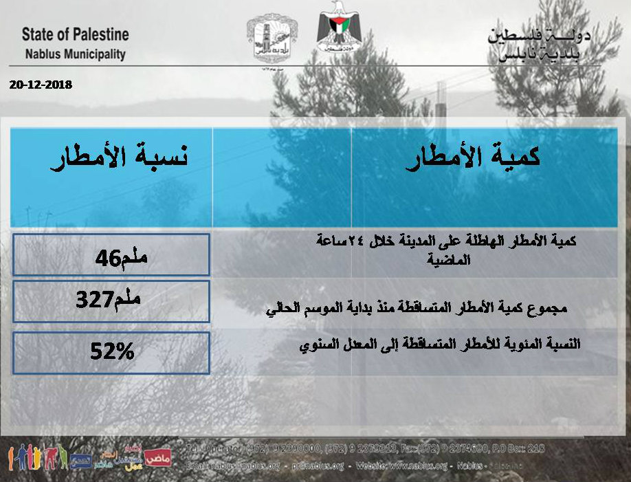 بلدية نابلس تعلن عن كمية الأمطار الهاطلة على المدينة خلال الـ 24 ساعة الماضية.