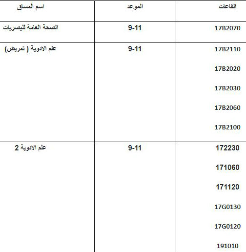 كلية الطب وعلوم الصحة في جامعة النجاح تنشر مواعيد الامتحانات التي كانت مقررة يوم السبت 15.12.2018.