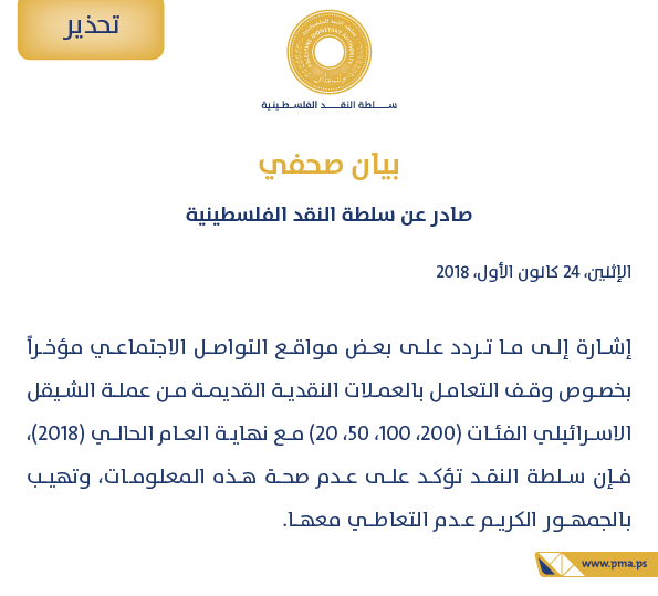 سلطة النقد تنفي ما تم تداوله بخصوص وقف التعامل بالعملات النقدية القديمة من عملة الشيقل.