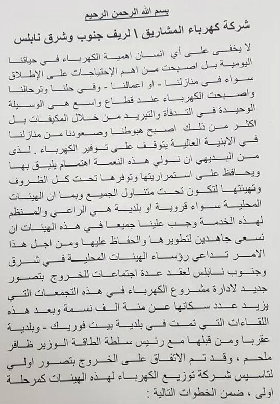 جدول فصل الكهرباء في نابلس