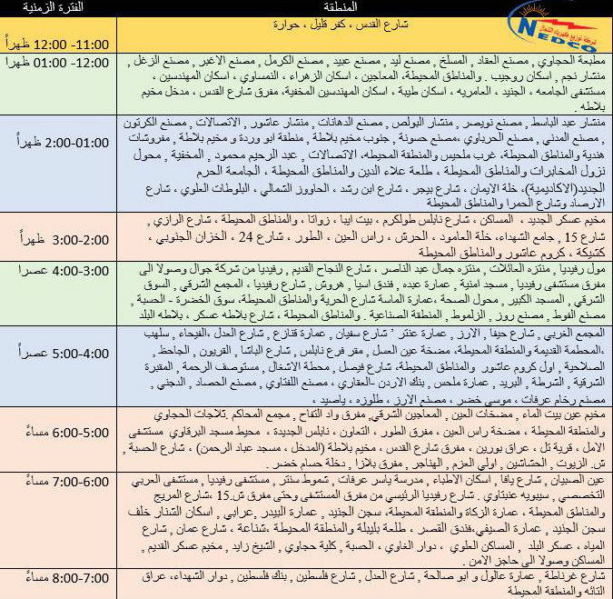 جدول توزيع المياه في نابلس