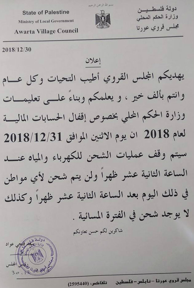 مجلس قروي عزموط يوضح سبب انقطاع الكهرباء