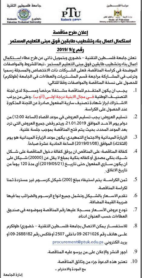 إعلان للمشاركين بمعرض فلسطين للعلوم والتكنولوجيا