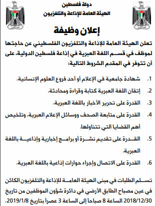 وظيفة شاغرة في الهيئة العامة للإذاعة والتلفزيون