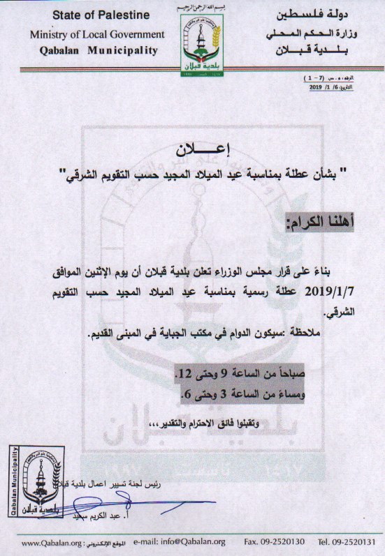 بلدية قبلان تعلن عن دوام مكتب الجباية خلال العطلة.