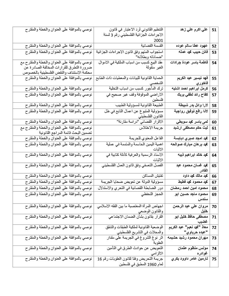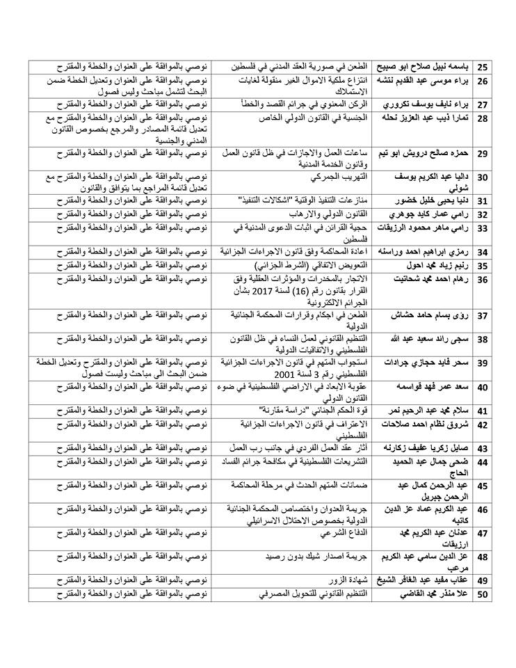 نقابة المحامين تنشر القرارات والتوصيات المتعلقة بخطط الأبحاث المقدمة من قبل المتدربين.