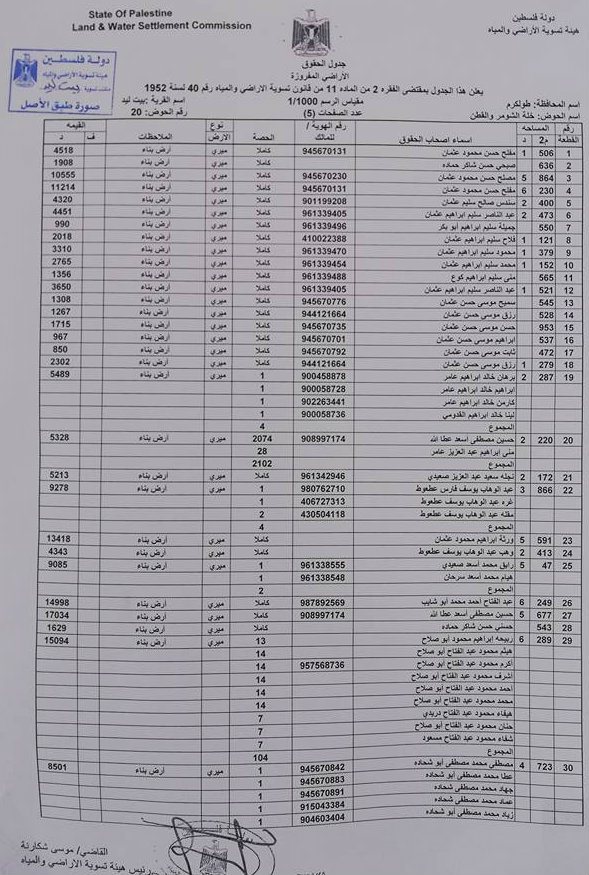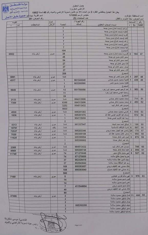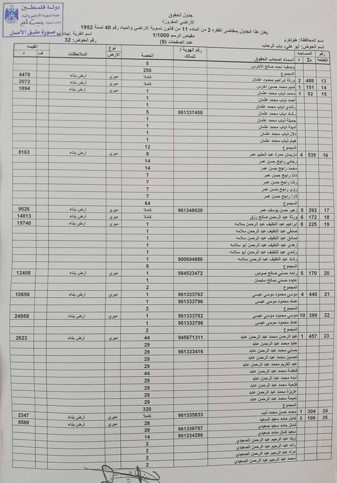 قائمة المرشحين لانتخابات غرفة طولكرم