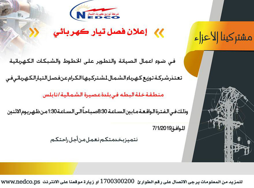 فصل الكهرباء 5 ساعات في عصيرة الشمالية