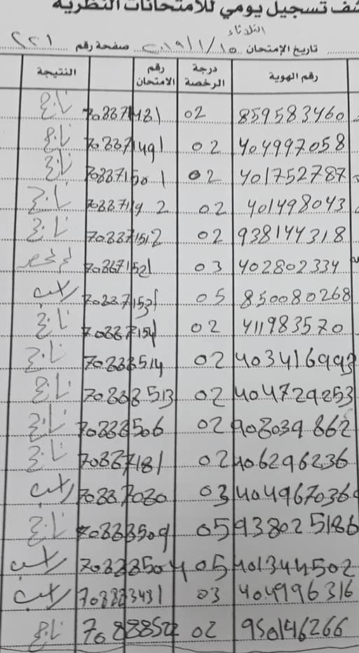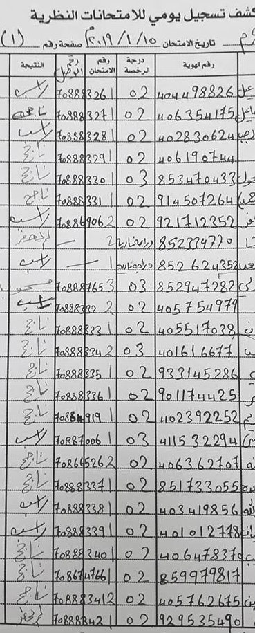 نتائج امتحان السياقة النظري ليوم الثلاثاء 15.01.2019: