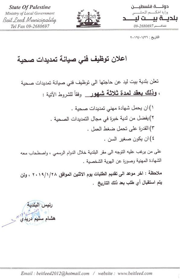 وظيفة شاغرة في سوبر ماركت بنابلس