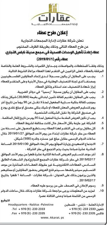 طرح عطاء لمجمع بلدية نابلس