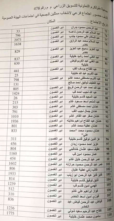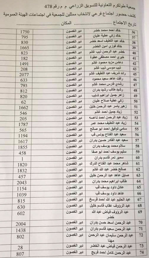 "إعلان للمزارعين المسجلين في الجمعية الزراعية للتسويق - طولكرم