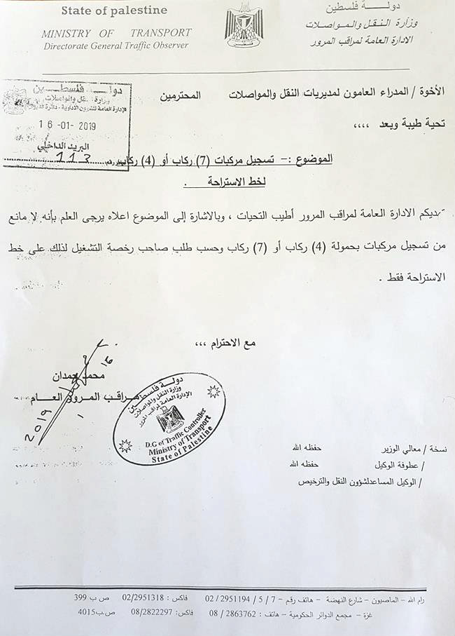 وزارة النقل والمواصلات تنشر إعلاناً بشأن تسجيل المركبات على خط الاستراحة.