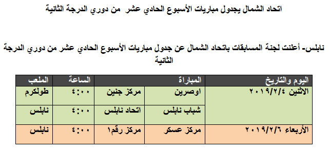 اتحاد الشمال يعلن عن مواعيد مباريات الأسبوع الحادي عشر من دوري الدرجة الثانية.