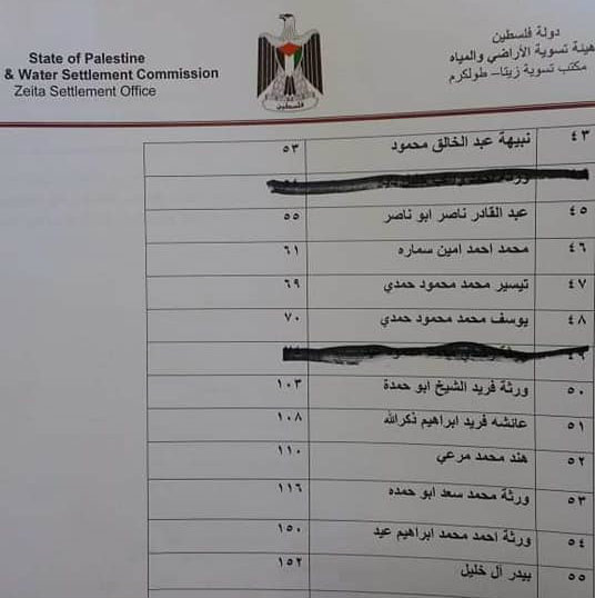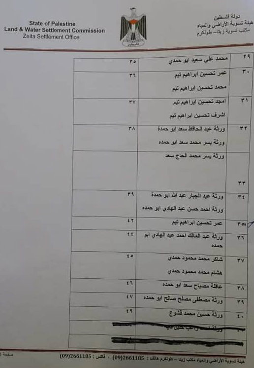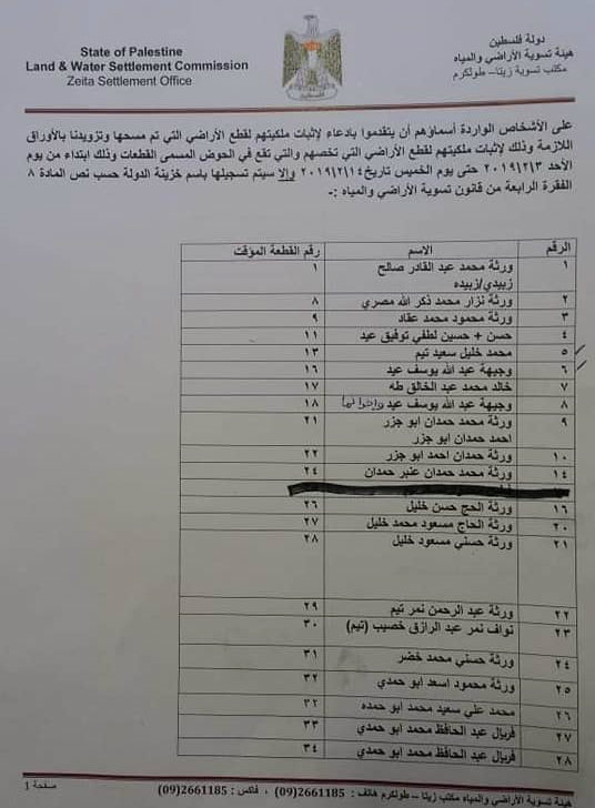 مكتب تسوية أراضي ومياه زيتا ينشر أسماء من عليهم مراجعته.