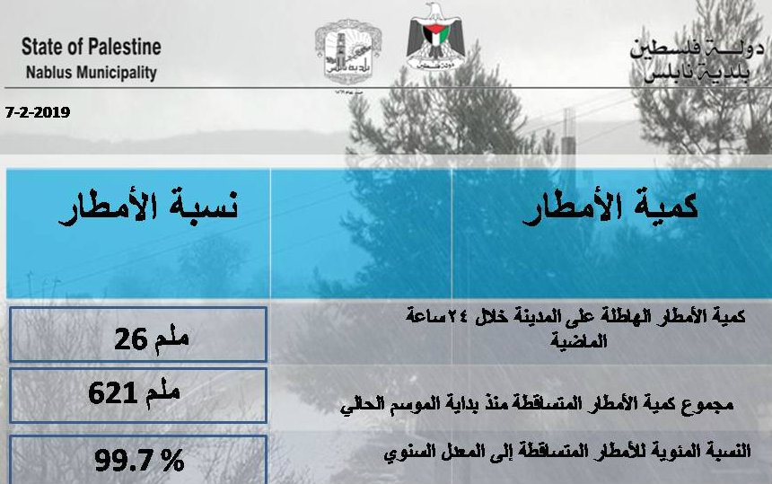 بلدية نابلس تنشر مجموع كميات الأمطار الهاطلة على مدينة نابلس.