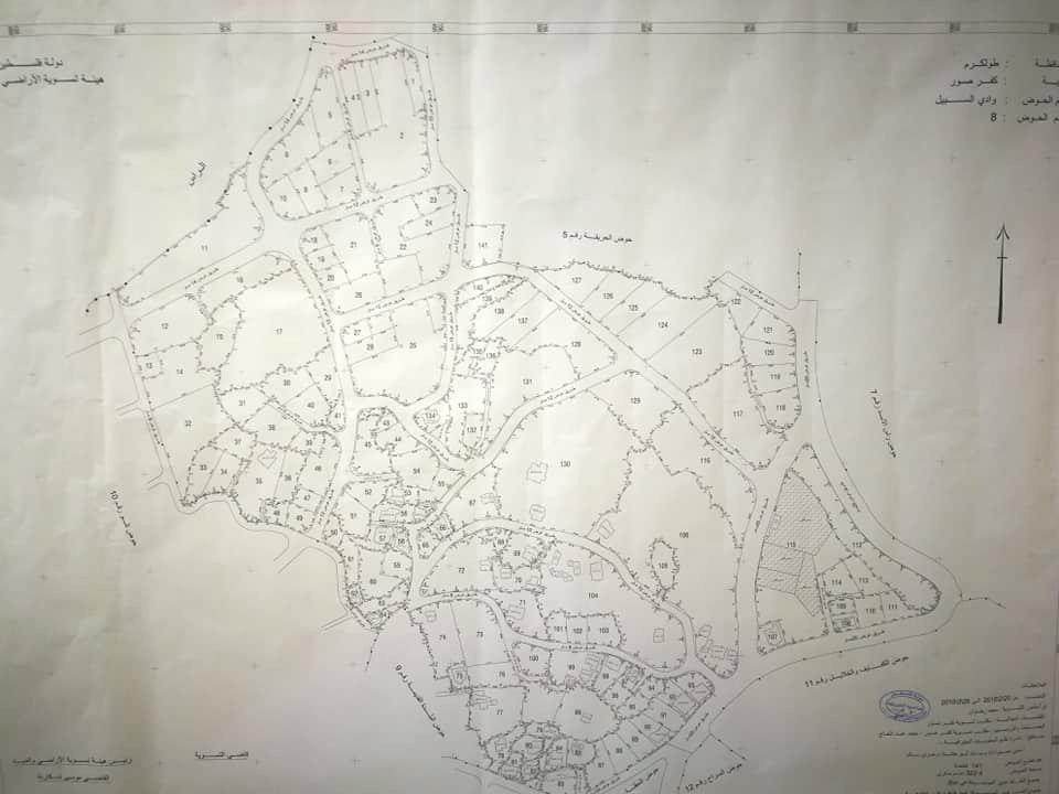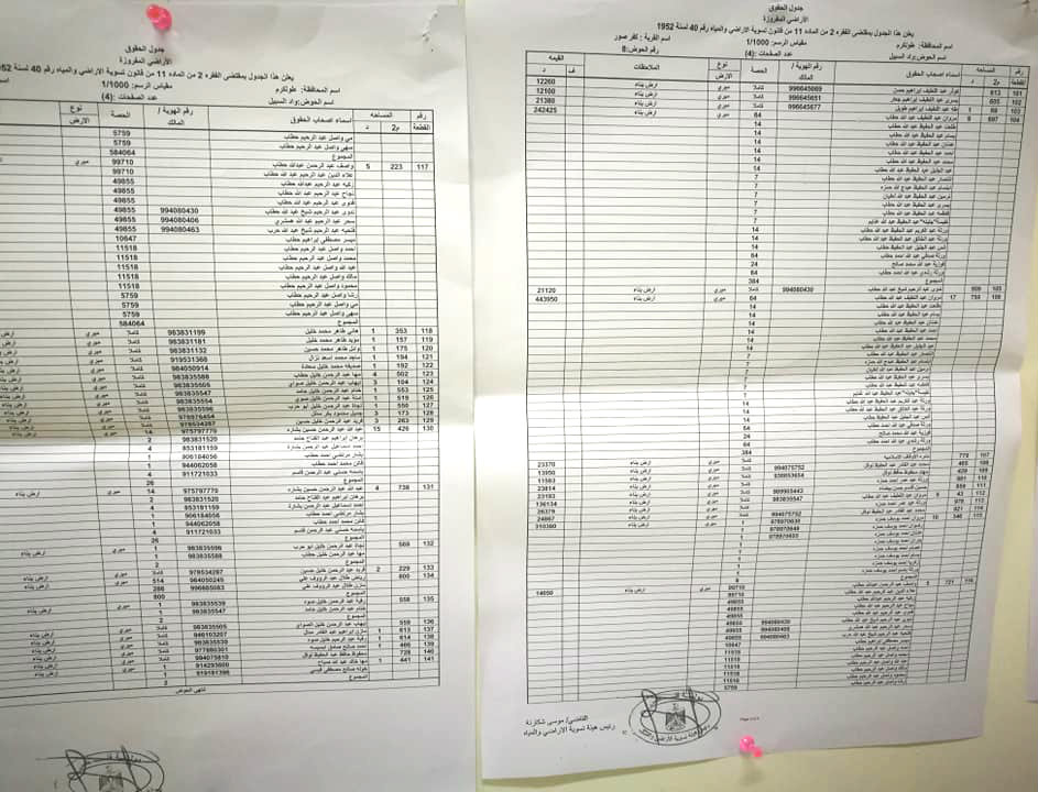 مكتب تسوية الأراضي والمياه في كفر صور يعلق جدول الحقوق لحوض رقم 8 في القرية.