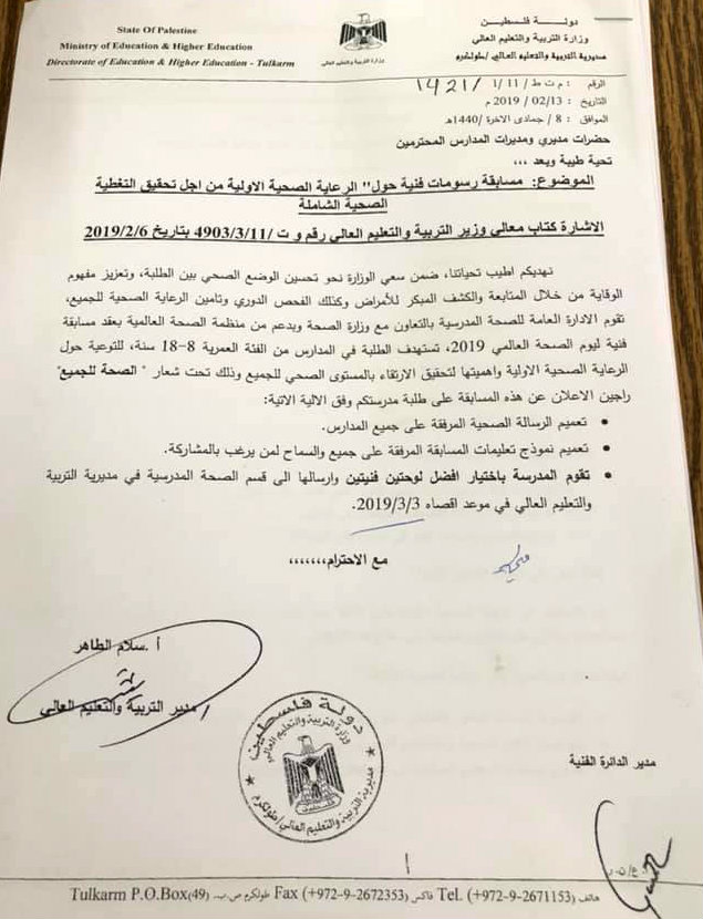 طولكرم.. مسابقة رسومات فنية حول الرعاية الصحية