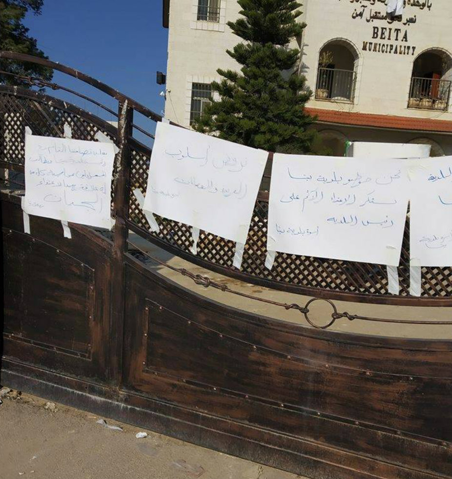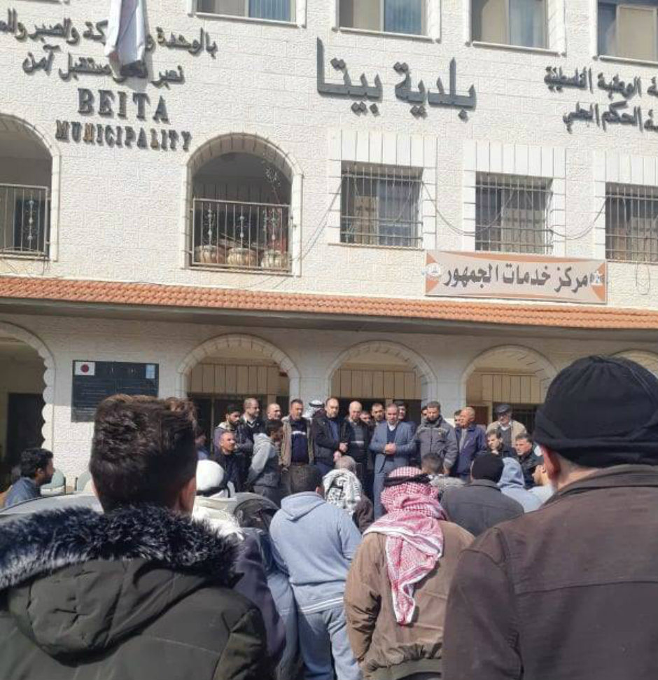 نظم أعضاء بلدية بيتا والعاملون فيها، صباح الخميس 21.02.2019، وقفة احتجاجية أمام مقر البلدية، للتعبير عن رفضهم للاعتداء على رئيس البلدية فؤاد معالي (أبو رأفت)، والذي تمثل بإطلاق النيران عليه ليلة أمس.