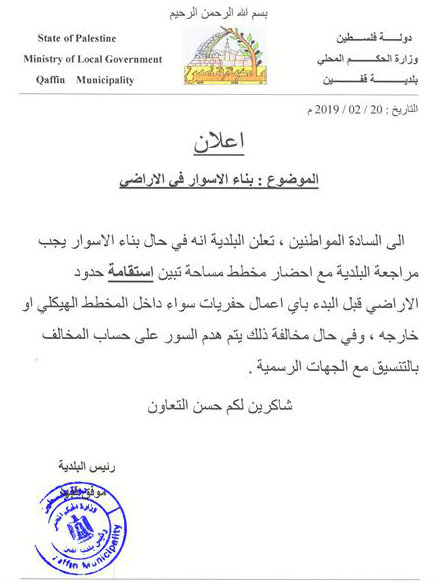 قفين.. إعلان بشأن بناء الأسوار